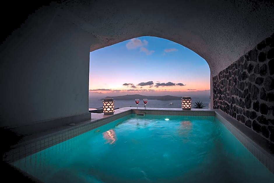 Featuring a private pool and views over the Caldera, this suite opens to a private, spacious terrace with sun beds and dining area.